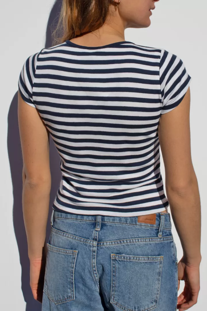 Crew neckline t-shirt, white, short sleeves, short length, relaxed fit.