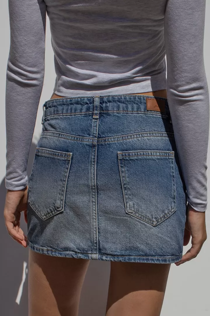 Low waist skirt, button up and zip fastening, belt loops, with pockets, short length, slim fit.